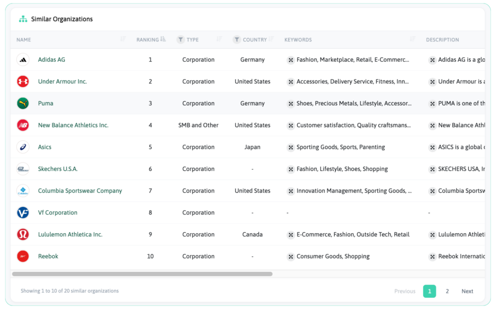 This means you can instantly uncover hidden players, emerging startups, and key industry peers.